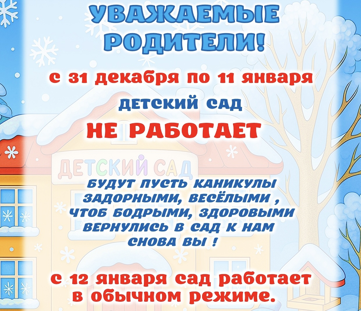 Наш детский сад сегодня - это "дом больших возможностей", где каждый ребенок может добиться успеха. Наш детский сад сегодня - это дом, в котором интересно детям и педагогам. Наш детский сад сегодня - это стабильно высокое качество образования и воспитания. А каким наш детский сад будет завтра - зависит и от Вас. Надеюсь, что Вы станете нашими постоянными посетителями и заинтересованными собеседниками.